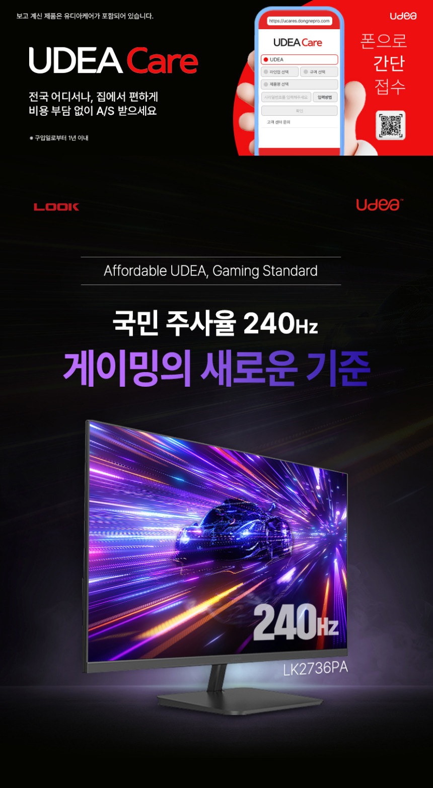 오늘 소개할 제품은 2025년 8월에 막 출시된 제이씨현 UDEA LOOK LK2736PA 유케어 27인치 240Hz 게이밍 모니터입니다.